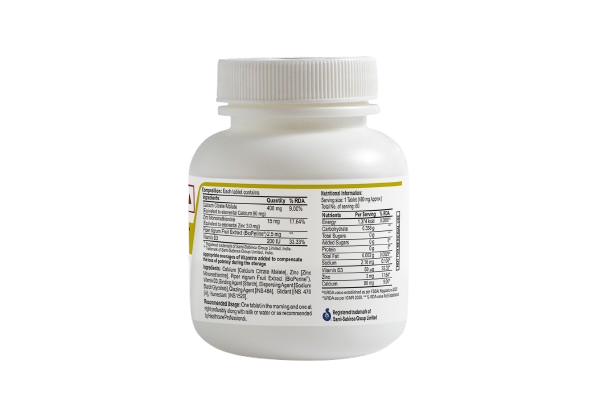 Calci D Max™ is a potent combination of clinically proven ingredients to support bone health. Formulated with Calcium Citrate Malate, Vitamin D3, Zinc Monomethionine, and the bioavailability enhancer BioPerine®.